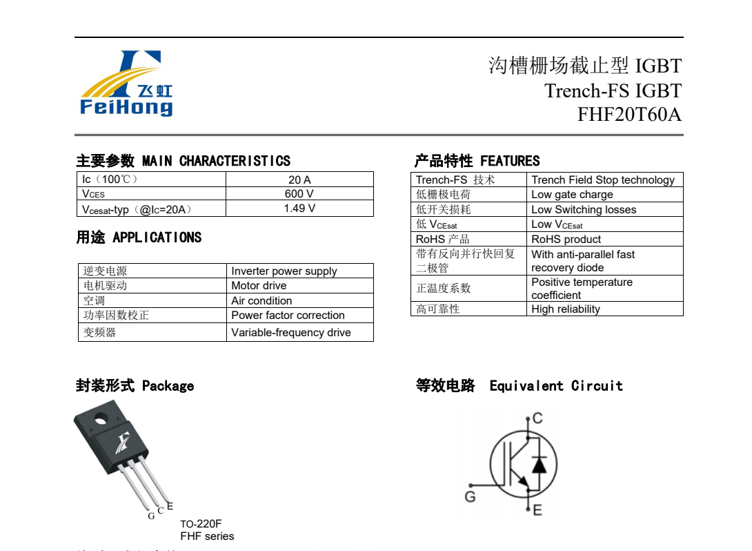 飛虹半導體逆勢發布:國產IGBT單管60T65A、75T65A、20T60A強勢來襲! 2023-04-03